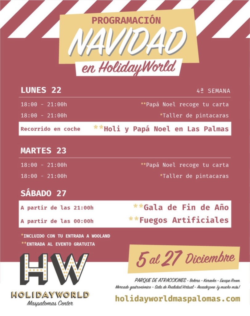 A continuación te contamos un poco acerca de los eventos que podrás disfrutar en Holiday World Maspalomas en estas fechas tan mágicas:
