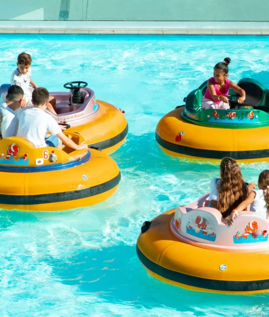 Schiff ahoi! Steuere auf einem der 6 Boote durch das beleuchtete Becken.